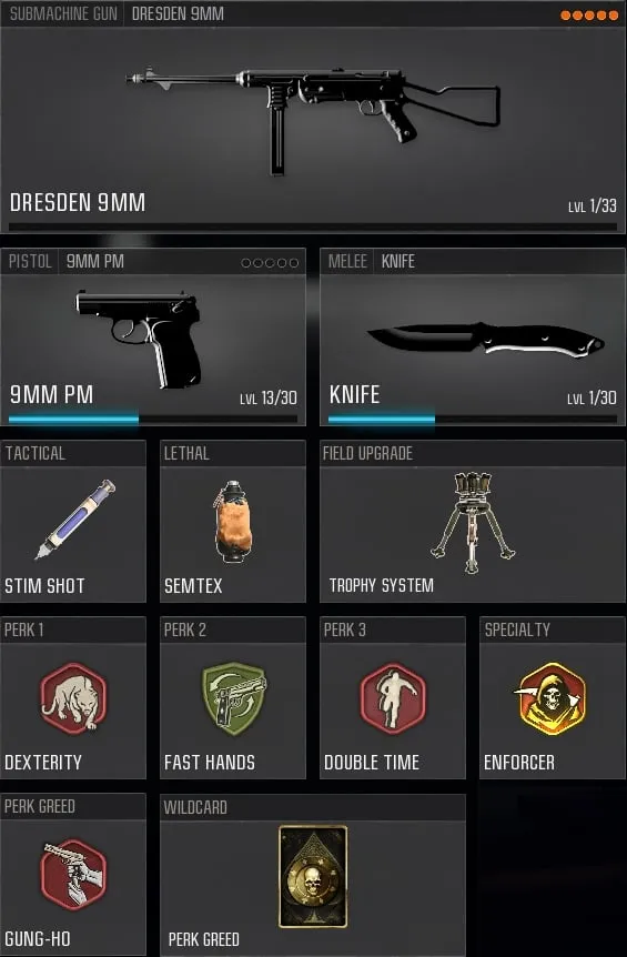 Por defecto, tiene 33 niveles que podís subir, y su cargador puede almacenar 32 balas a la vez. A medida que subís de nivel, se desbloquean nuevos accesorios. Es la versión de Activision del clásico MP40, uno de los subfusiles más icónicos en la historia de CoD.