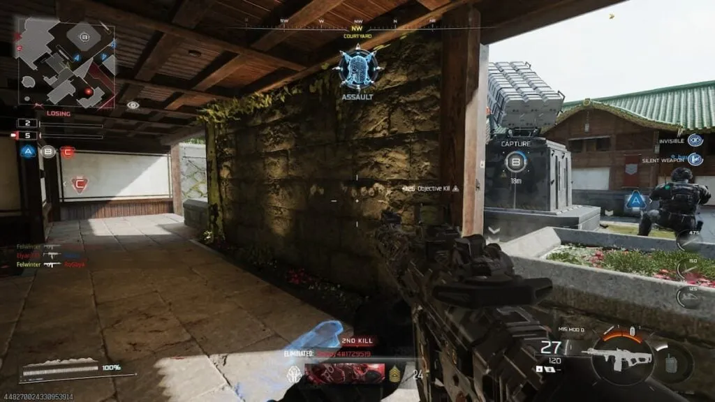Eliminar a cualquier enemigo que esté capturando el objetivo cuenta como baja de objetivo, incluso si tú estás fuera de la zona. Y si matas a alguien que esté fuera de la zona mientras tú la estás capturando, también cuenta. Cada vez que consigas una baja de objetivo, vas a ver una etiqueta Objective Kill al lado de tu mira, que vale 125 puntos.