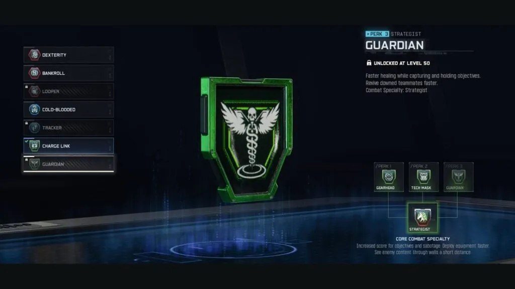 Gearhead es muy bueno porque te entrega dos cargas de Field Upgrade y recarga el equipo más rápido, lo que te permite tirar Trophy Systems y Decoys con más frecuencia. Tech Mask te hace resistente a flashbangs, concussions y gas, algo clave para sobrevivir en zonas de objetivo caóticas. Guardian mejora aún más tu capacidad de aguantar mientras capturas o defiendes zonas, dándote más tiempo para acumular puntos.