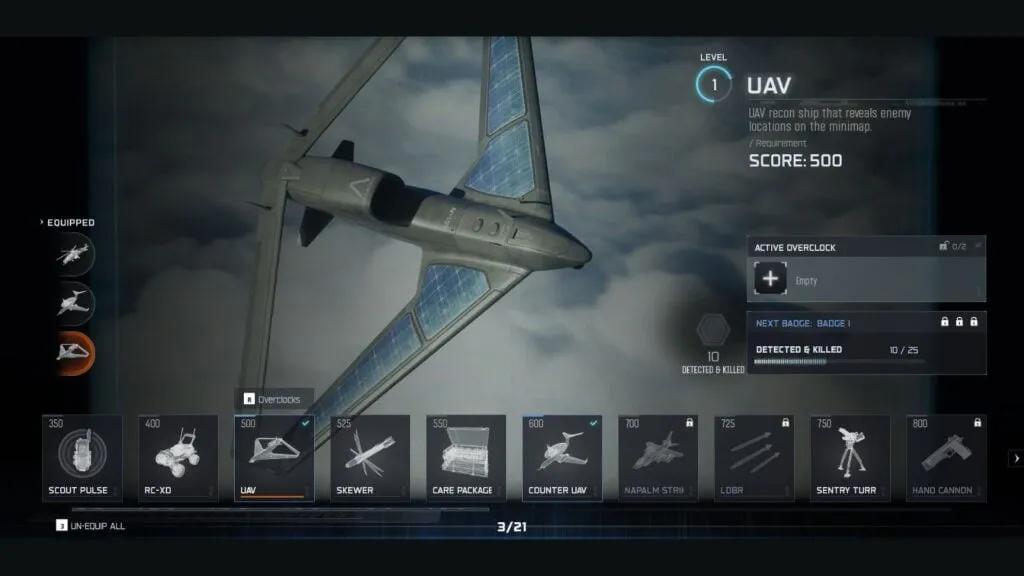 Squad Link es una alternativa sólida si quieres ganar score a partir de lo que hace tu equipo. En cambio, si estás jugando Overload, Active Camo es extremadamente útil, porque te vuelve casi invisible para los enemigos y te permite tomar el dispositivo y llevarlo a la zona rival con mucha más facilidad.