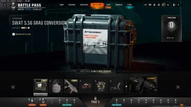 La conversión del SWAT 5.56 al estilo Grau es una recompensa estándar que aparece en la página cinco del pase de batalla de la temporada tres de BO6 y Warzone. La buena noticia es que está en el camino gratuito, así que no necesitás comprar el pase premium para conseguirla.
