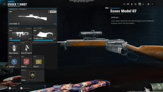 Recomiendo sí o sí acompañar el Essex con una buena SMG como la LC10 o Ladra. Este rifle de precisión depende de la puntería y el timing, así que tener una opción confiable de corto alcance es clave por si fallás el primer tiro y te rushéan.