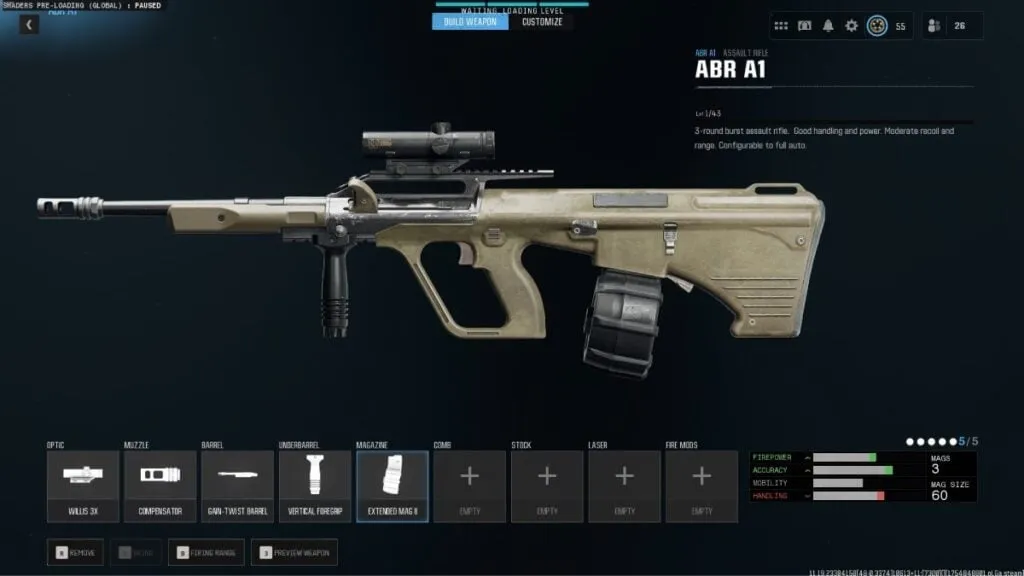 El ABR A1 es básicamente una versión renovada del AUG. Es un fusil de ráfaga de tres disparos con buen manejo y potencia. Con los accesorios adecuados, incluso se puede configurar para disparo automático, con buena velocidad de bala y muy poco retroceso.