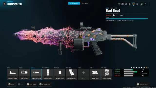 Esta build usa la carta comodín Gunfighter para desbloquear todos los slots posibles y maximizar su rendimiento a larga distancia. Con los últimos buffs, el Compensador, la Empuñadura Vertical y los Recoil Springs hacen que el arma se sienta como un rayo láser.