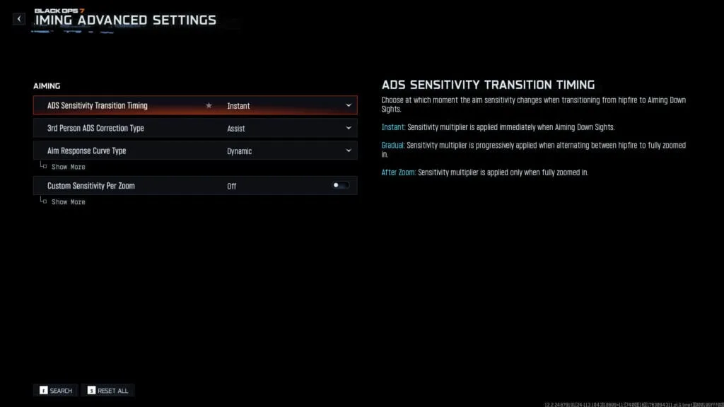 - ADS Aim Assist: Activado