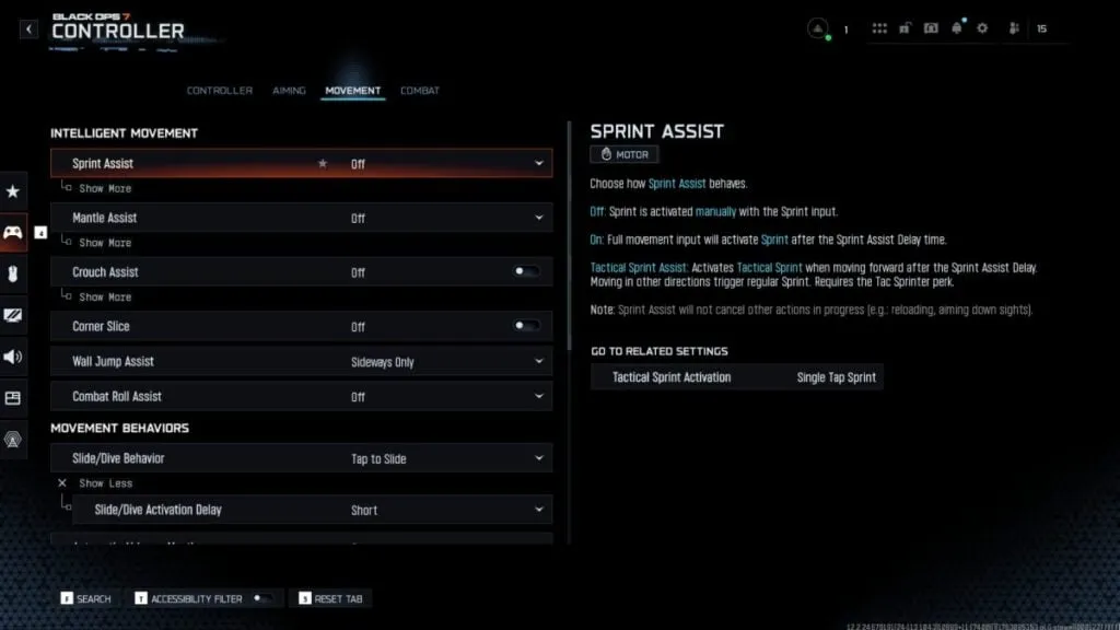 Dejá las asistencias de sprint, escalar y agacharse desactivadas a menos que prefieras un estilo más automático. Si aún estás aprendiendo a saltar por las paredes, activá la asistencia lateral. Si ya dominás el movimiento, es mejor tenerla apagada.