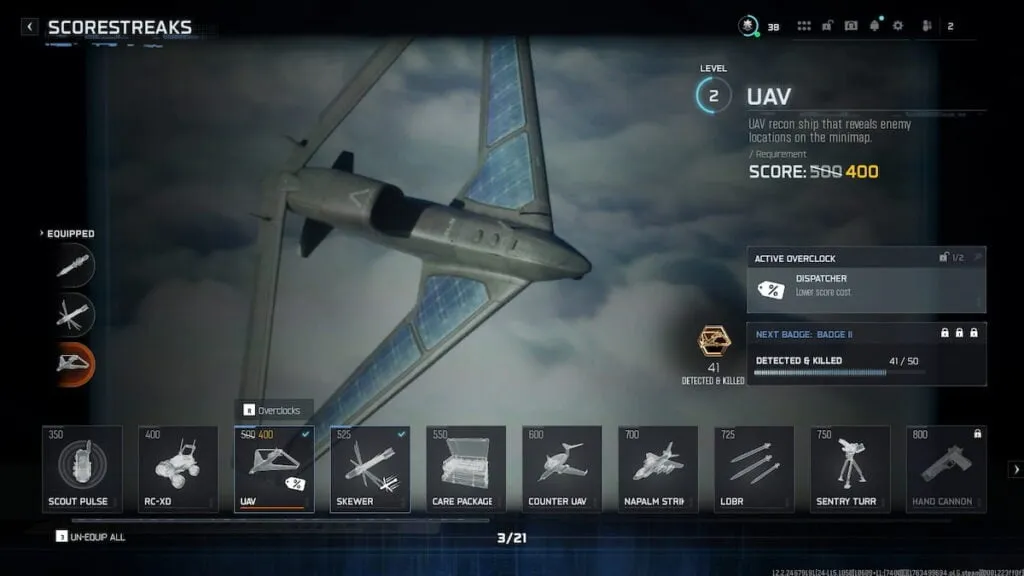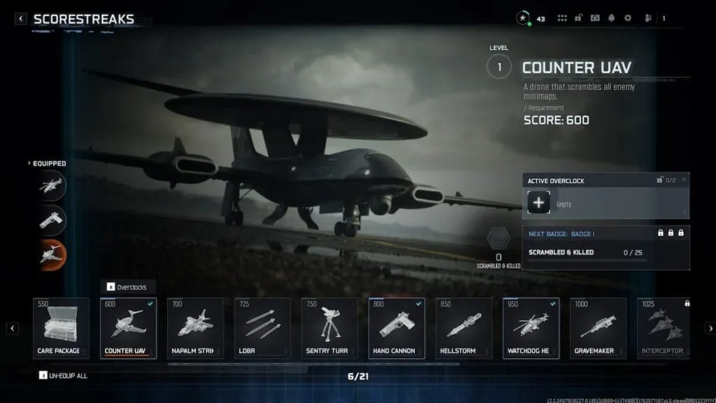 La mejor combinación de Scorestreaks para cualquier nivel de habilidad lleva UAV, Skewer y Hellstorm. El UAV es el clásico para revelar enemigos en el minimapa, a menos que anden con Ghost, y podís bajar su costo a 400 de Score usando el Dispatcher Overclock.