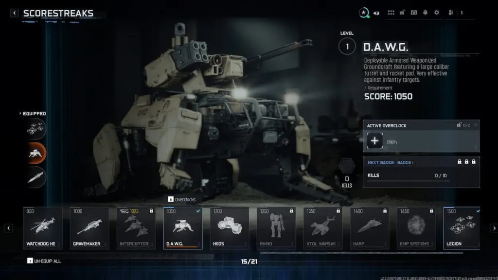 La gracia del D.A.W.G. es que recorre el mapa en tierra en vez de quedarse flotando como el Helo, así que normalmente le sacai más provecho. Y el VTOL Warship tiene suficiente fuego pesado para mantener controlado a todo el equipo rival. También podís jugártela full con el Legion: es una Scorestreak súper opresiva que dura harto rato y persigue enemigos con drones todo el tiempo. El tema es que cuesta 1,500 de Score, así que solo los más tryhard la van a poder usar seguido.
