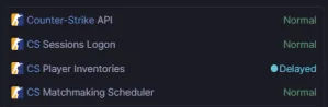 Busca en la esquina derecha para ver el estado de los servidores en distintas regiones. También puedes ver el estado del API de Counter-Strike, inventarios de jugadores y el sistema de emparejamiento.