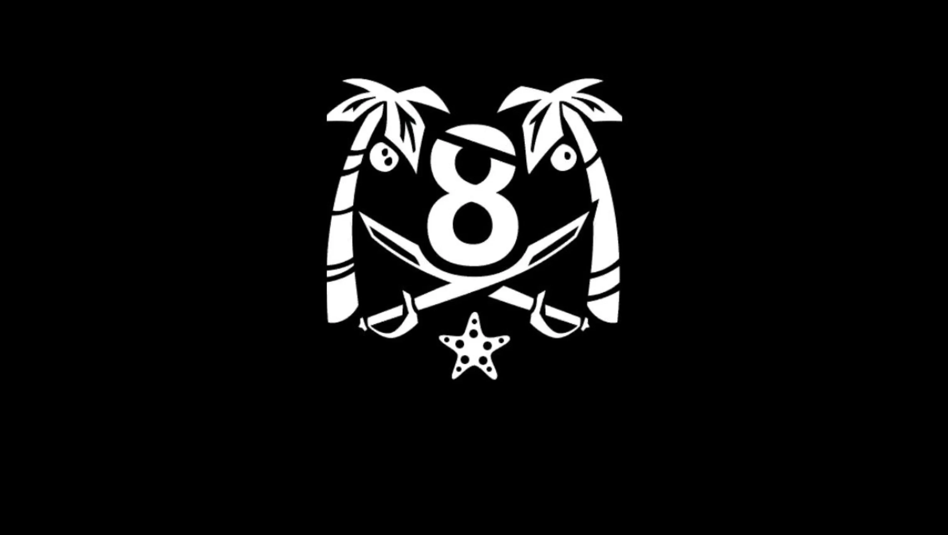 Este banner se conseguía al completar todos los desafíos semanales de descubrimiento del Battle Royale. Presenta dos espadas, el número 8 y palmeras decorativas.