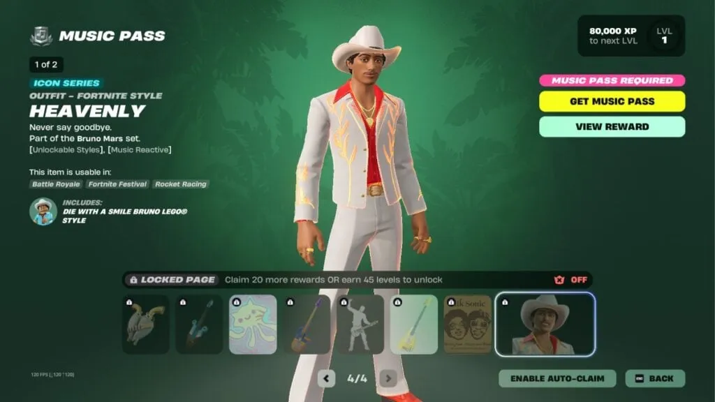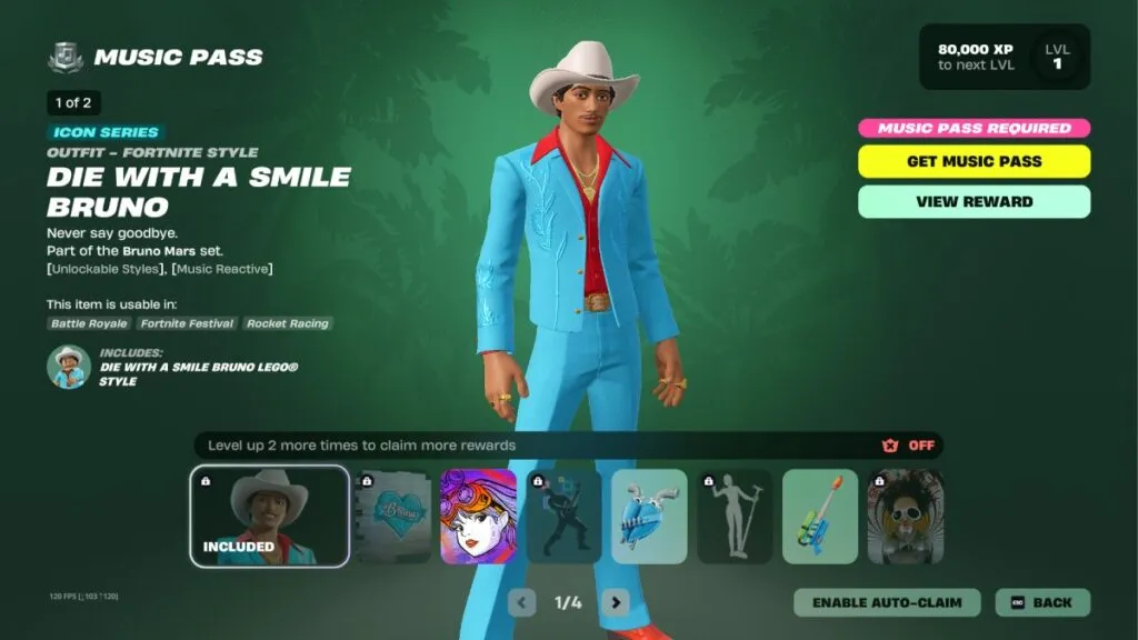 Todos los objetos, canciones y skins de Bruno Mars en el Pase Musical de Fortnite temporada 9