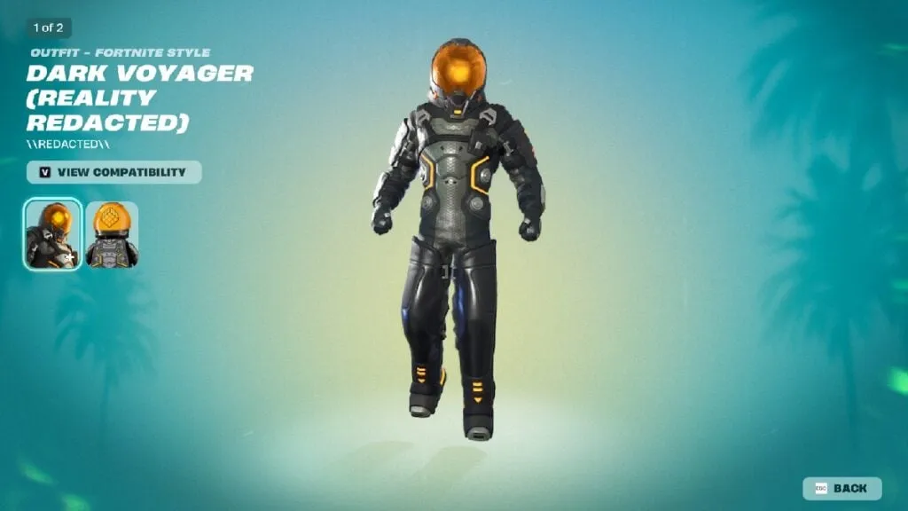 Dark Voyager (Reality Redacted) es la versión astronauta remix de final de pase y funciona, en la práctica, como el skin de nivel alto del Capítulo 7 Temporada 1.