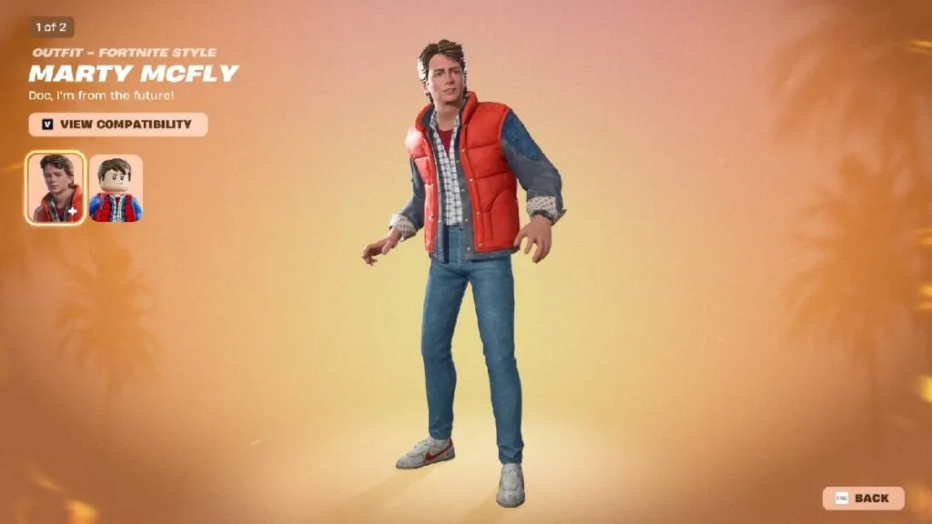 Marty McFly se suma como skin de colaboración con Back to the Future en el pase del Capítulo 7 Temporada 1 de Fortnite. Además del outfit, el pase incluye cosméticos tematizados como un ala delta inspirada en la película y otros accesorios que calzan con el foco de crossovers cinematográficos de esta temporada.