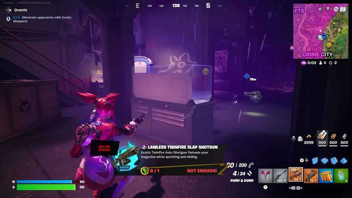 Tranquilo, esta misión no es tan complicada como parece. Por “oponentes” cuenta cualquier enemigo, incluso guardias de bóvedas. Las armas exóticas se compran en los cuartos traseros del Mercado Negro por 1 Dill Bit. Podís elegir entre:
