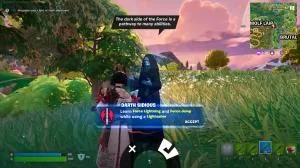 Para conseguir la habilidad del Rayo de la Fuerza Mítico en Fortnite, tienes que irte al lado oscuro y encontrar al NPC de Darth Sidious, que aparece de forma aleatoria en el mapa. Cuando aparezca, verás un ícono rojo con un sable láser y dos rayos al lado. Esto ocurre en momentos aleatorios de la partida. También puede aparecer un ícono azul con un NPC temporal, si decides unirte al lado bueno.