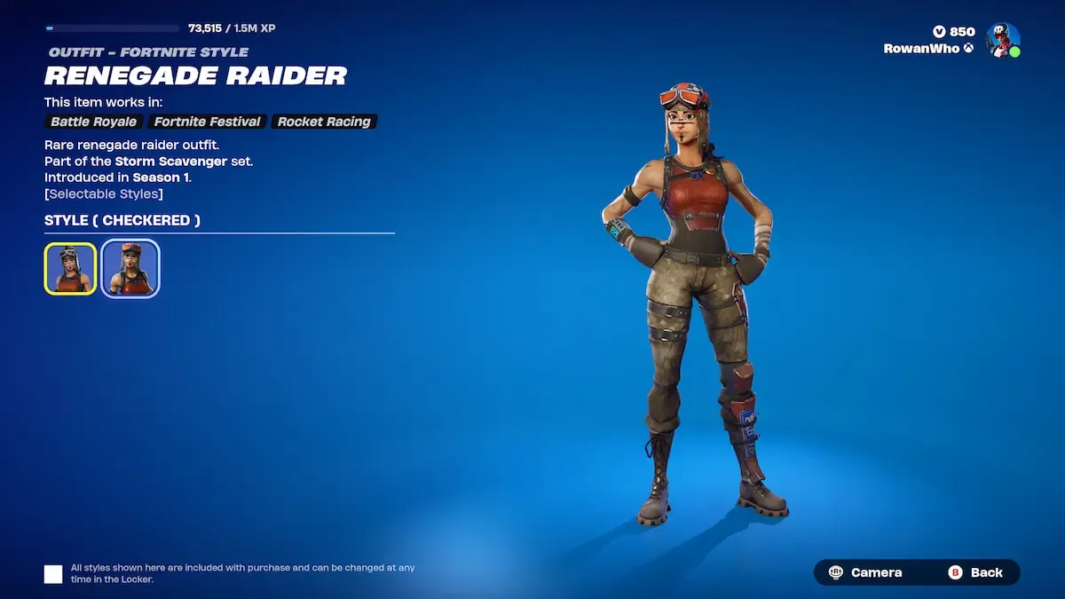 Esta temporada, las skins están disponibles de una forma bastante similar. Los jugadores deben acumular cientos de miles de XP para desbloquear los cosméticos OG en la Tienda de Objetos y luego gastar sus V-Bucks para comprarlos. Renegade Raider, por ejemplo, requiere 1.5 millones de XP.