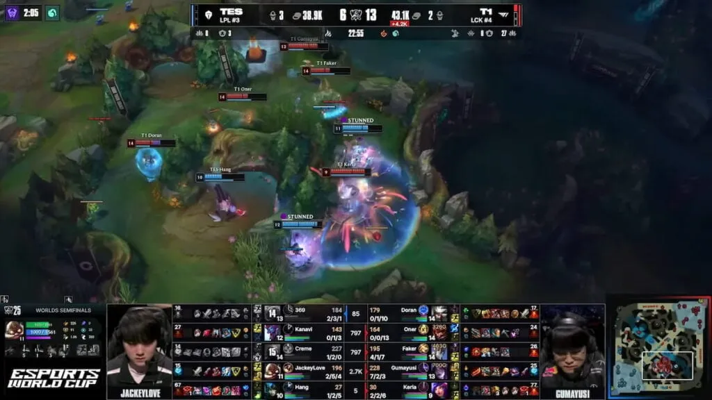El “lobo” colocó un guardián de control en el arbusto y mandó un clon para distraer a los rivales con su habilidad Shapesplitter. Mientras los enemigos perdían un segundo matando al lobo falso, Keria se posicionó por detrás del buff rojo y lanzó su definitiva, Pop Blossom, atrapando a Jackeylove y al jungla enemigo. Aunque recibió un golpe de torre cruzando la jungla, eso no reveló su posición en el mapa, lo que fue clave para que la jugada resultara perfecta en una partida tan decisiva.