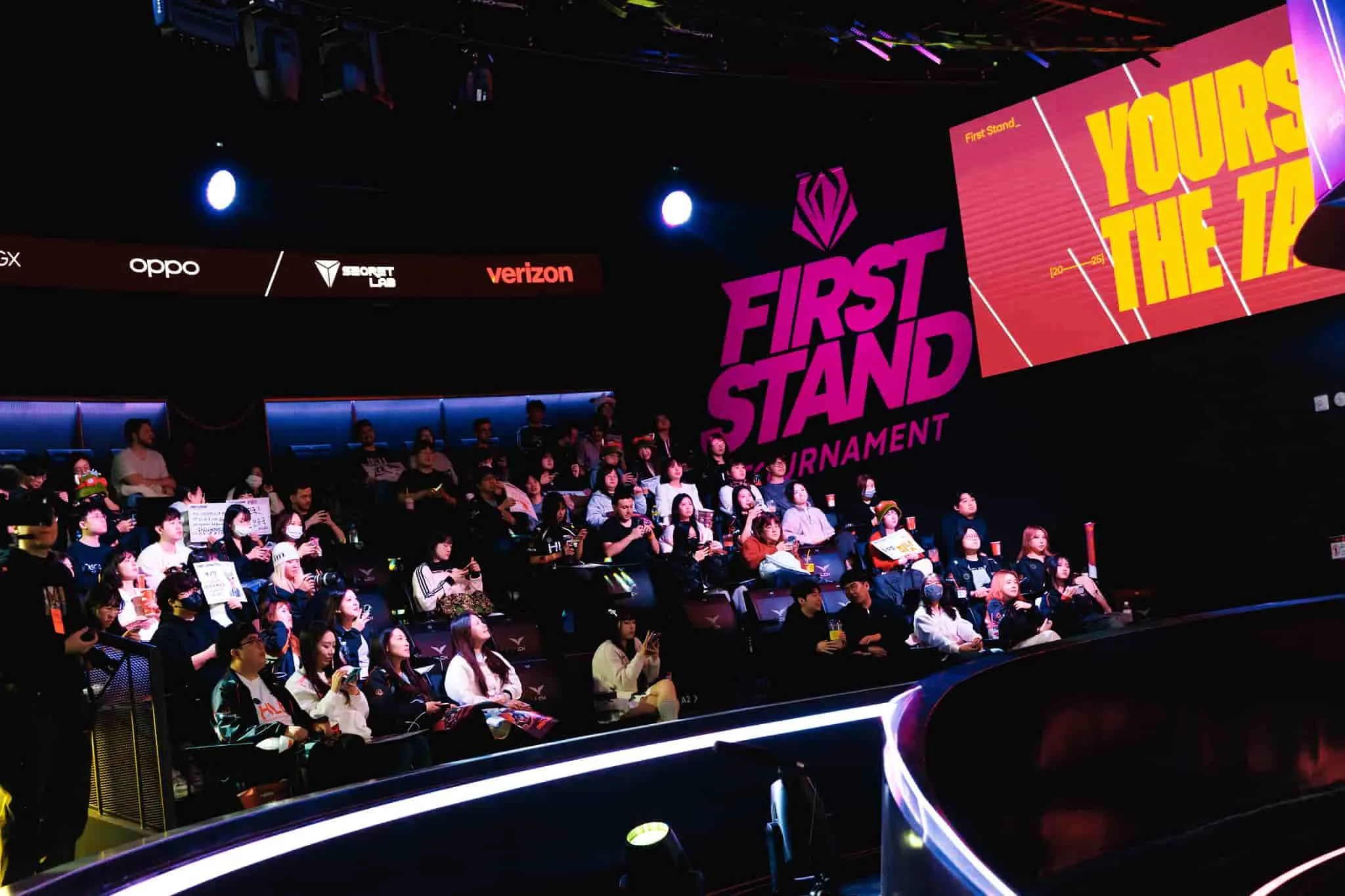 Finalistas de los TenZ VALORANT Community Awards en un escenario de esports con trofeo y público.