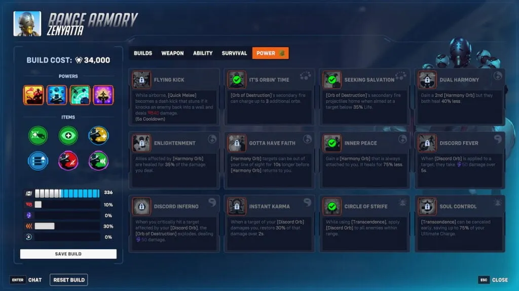 Después, alcanzás tu power spike en la ronda tres con It’s Orbin’ Time, que te da más orbes cargados para meter burst. Luego podís sumar Seeking Salvation, que te permite borrar rivales con poca vida como healers y DPS. Finalmente, Circle of Strife potencia tu ulti para no solo curar, sino también aplicar Discord a todos los enemigos, dándole a tu equipo la chance de ir agresivo y dar vuelta la pelea.
