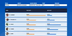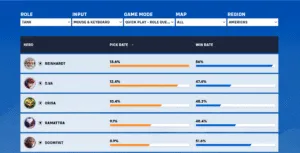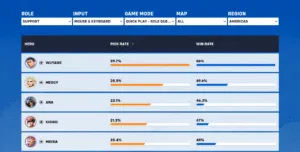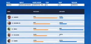 Blizzard deja todas las tasas de selección disponibles en su sitio oficial de estadísticas, donde podís filtrar por rol, región, mapa e incluso por método de control, pero ojo que tiene un cálculo único.