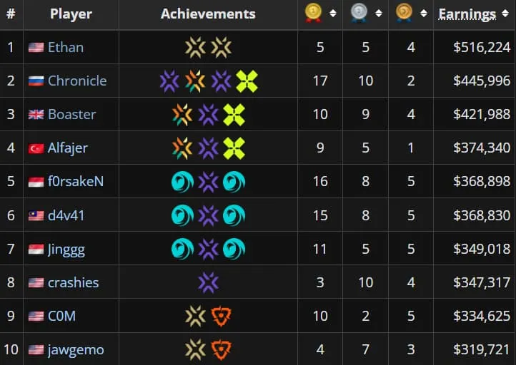 Ethan es el único jugador de VALORANT en la historia con dos títulos globales. No ha ganado otros torneos regionales o internacionales, pero esos dos campeonatos mundiales bastan para justificar su impresionante récord de premios.
