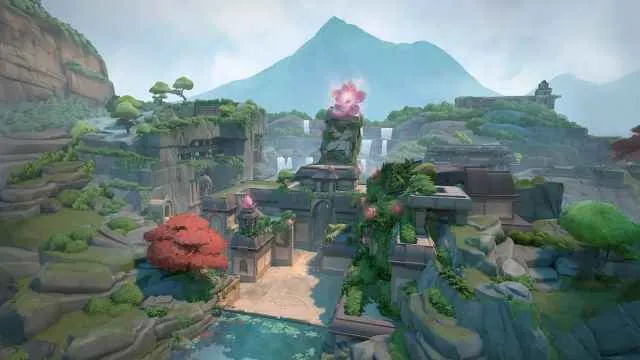 Lotus es uno de los dos mapas de VALORANT con tres sitios y tiene lugar dentro de un templo antiguo en los Ghats Occidentales de India. El mapa presenta puertas giratorias que permiten a los jugadores moverse entre sitios y paredes destructibles que pueden abrir nuevos caminos.