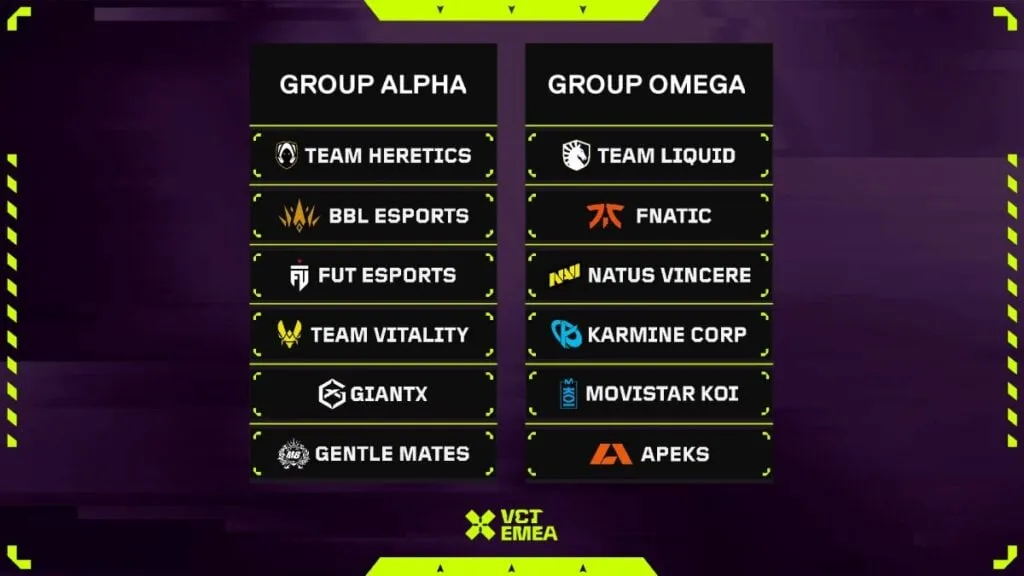 En el Grupo Alpha tenemos a Team Heretics, BBL Esports, FUT Esports, Team Vitality, GIANTX y Gentle Mates.